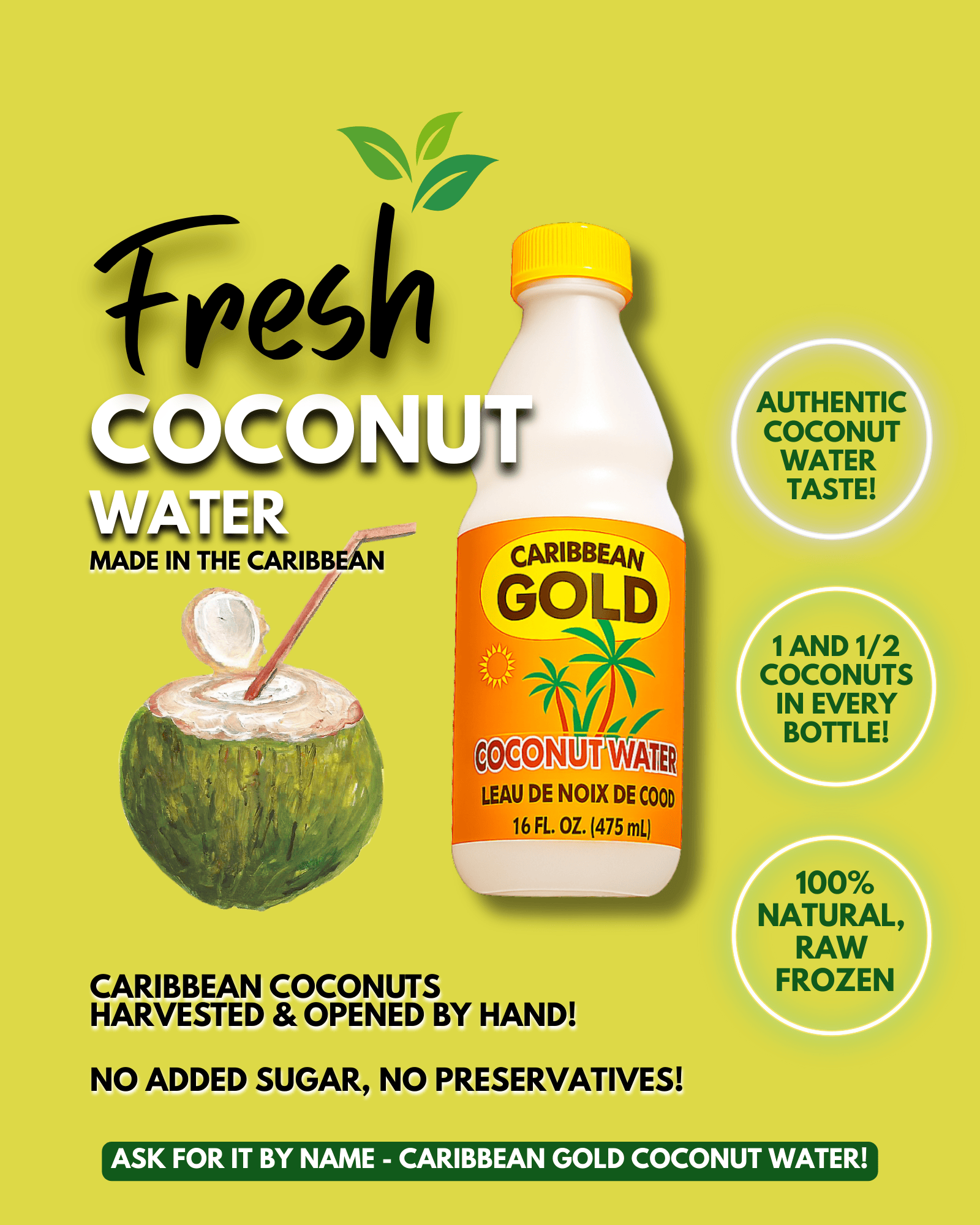 At Caribbean Gold, we believe the purest hydration comes straight from nature. That’s why every coconut is hand-picked, opened by hand, and instantly frozen at the source in the Caribbean—so you get the most authentic taste and freshness in every sip.